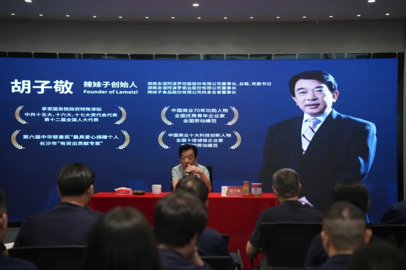 胡子敬先生作為辣妹子的靈魂人物,見證了品牌從誕生到發(fā)展壯大的每一個重要時刻。在培訓(xùn)現(xiàn)場,他以親身經(jīng)歷為藍本,講述辣妹子品牌源自1958年成立的沅江食品廠,歷經(jīng)改制困境,1998年攜知青情懷入駐,后期,打造湖湘文化特色品牌。通過創(chuàng)新研發(fā)辣椒醬、拓展全國渠道、深耕餐飲市場,辣妹子實現(xiàn)了持續(xù)穩(wěn)定發(fā)展,成為細分行業(yè)代名詞,并持續(xù)布局全產(chǎn)業(yè)鏈,讓世界品嘗湖南味道。胡子敬先生繪聲繪色的講述著那些鮮為人知的創(chuàng)業(yè)故事,員工們仿佛穿越時空,回到了那個充滿激情與夢想的年代。他提到,創(chuàng)業(yè)初期,團隊面臨著資金短缺、技術(shù)難題等諸多困難,但大家憑借著對辣椒調(diào)味品行業(yè)的熱愛和執(zhí)著,一步一個腳印地克服了重重障礙。正是這種堅韌不拔的精神,鑄就了辣妹子品牌今日的輝煌。