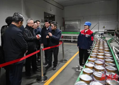 隨后,沈曉明書(shū)記察看了辣妹子辣椒醬、水果罐頭等食品自動(dòng)化生產(chǎn)線,了解辣椒原料供應(yīng)和深加工、市場(chǎng)拓展等情況,同時(shí)叮囑辣妹子嚴(yán)格落實(shí)食品安全主體責(zé)任,不斷提高自動(dòng)化生產(chǎn)水平,進(jìn)一步推動(dòng)擴(kuò)產(chǎn)擴(kuò)銷(xiāo),充分發(fā)揮辣妹子龍頭企業(yè)作用,帶動(dòng)更多農(nóng)業(yè)生產(chǎn)企業(yè)共享銷(xiāo)售渠道,帶動(dòng)更多湖南農(nóng)特產(chǎn)品走向全國(guó)。