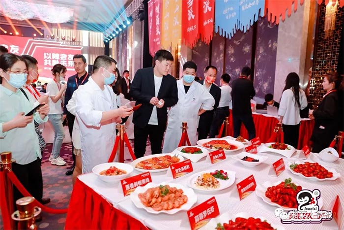 現(xiàn)場更具人氣的,是利用辣妹子新品烹飪出的多道熱門湘菜。濃香四溢,讓人垂涎欲滴的菜品,是烹飪技法與品質(zhì)食材的雙重呈現(xiàn)。結(jié)合兩種剁椒烹飪的雙色蒸翹鲌、雙色蒸魚頭,誘人的壇香和顏色透露出湖南人火辣卻不失溫和的直爽性格;祖庵紅燒肉、紅燒醬汁燜豬蹄,是湘菜豐富內(nèi)涵與湘廚深厚功底充分結(jié)合的較佳體現(xiàn);一道原香剁椒蒸雞,簡簡單單的酸辣口味,體現(xiàn)的是對食材的自信;多種口味的小龍蝦菜式,助力餐飲人在不同場景下做出消費(fèi)者喜愛的產(chǎn)品,也正順應(yīng)當(dāng)下食材和口味流行趨勢;原香剁椒蒸紅豆角、蒜蓉羅氏蝦以及多款涼拌菜品等,從口味、食材搭配等方向創(chuàng)新,可起到為餐廳提升上菜速度、豐富產(chǎn)品結(jié)構(gòu)、提高利潤的作用。菜品不僅獲得了湖南省餐飲行業(yè)協(xié)會常務(wù)副會長任偉政的肯定,更得到在場湘菜大師,行業(yè)專家們的一致好評。